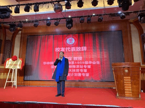 (生物系1959届毕业生,湖北民族大学退休教授余展琛作为校友代表发言)
