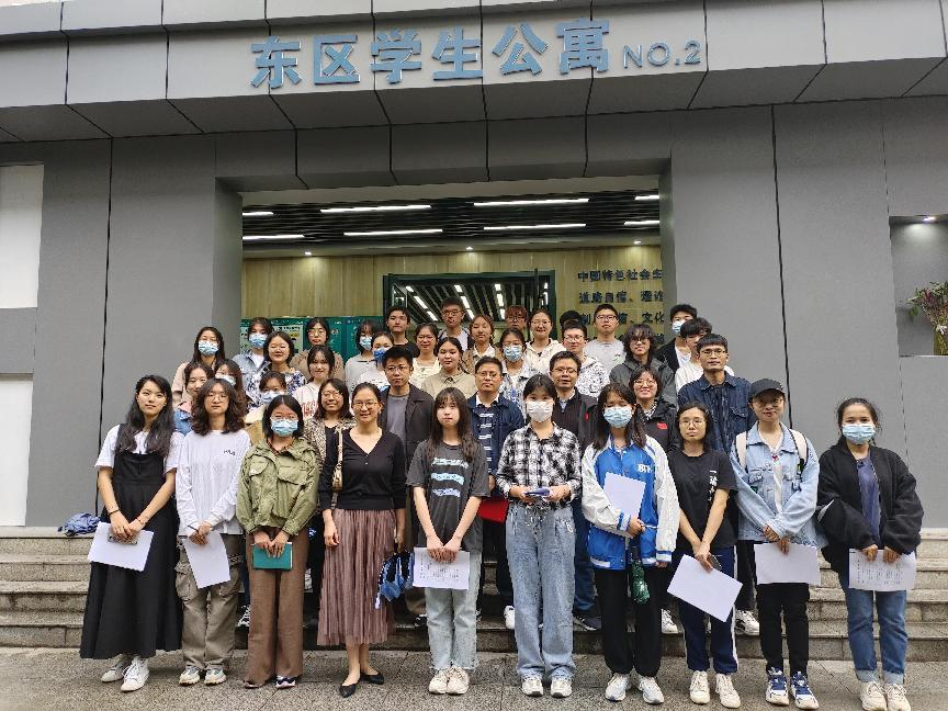 (22级7位班主任、辅导员、社区辅导员与宿舍卫生评分团合影留念)
