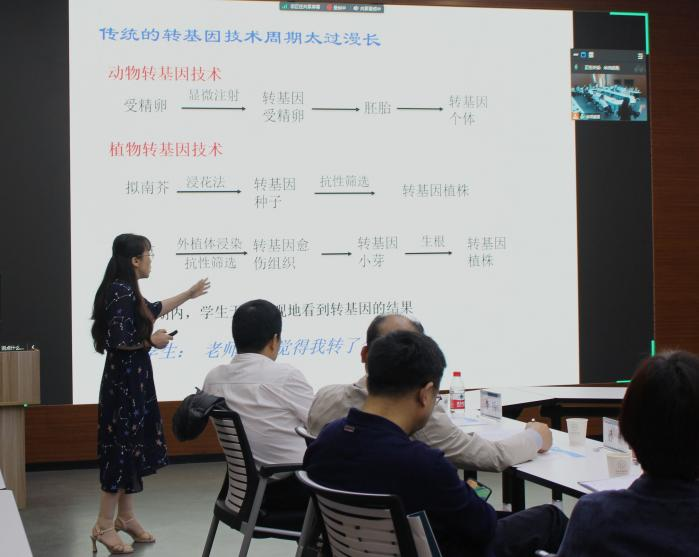 李登弟副教授作题为“病毒诱导基因沉默技术(VIGS)在植物基因功能研究中的应用”的报告,从项目介绍、项目背景、开展情况、项目优点与不足之处等方面一一展开,分享了自己将科研成果转化为实验教学项目的改革经验。