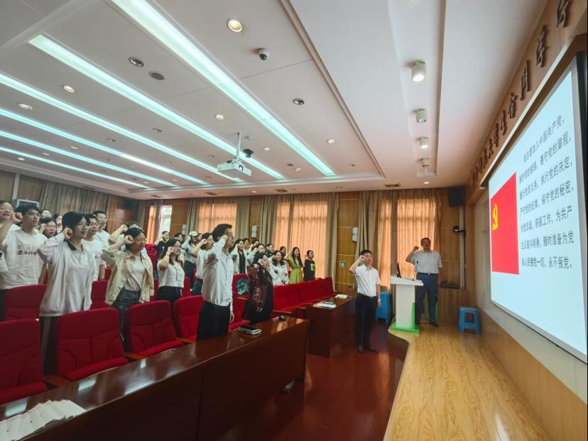 “我志愿加入中国共产党……随时准备为党和人民牺牲一切,永不叛党。”郑宁书记带领全体党员重温入党誓词,党员们高举右拳,面向党旗庄严宣誓,在铮铮誓言中重温入党初心,坚定理想信念,铿锵豪迈的声音彰显着每一位毕业生党员奔赴远方的使命和担当。