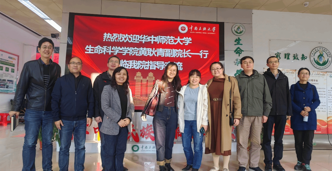 2025 年 11 月 13 日下午,华中师范大学生命科学学院黄耿青副院长带队遗传学教研室 5 位老师,赴中南民族大学生命科学学院开展教学交流活动。中南民族大学生命科学学院谭艳平副院长、郭小华副院长及刘新琼、王红莹、彭勇波等老师热情接待,双方围绕《遗传学实验》《分子生物学实验》两门核心课程深入研讨,并就科研与教学融合路径交换意见。