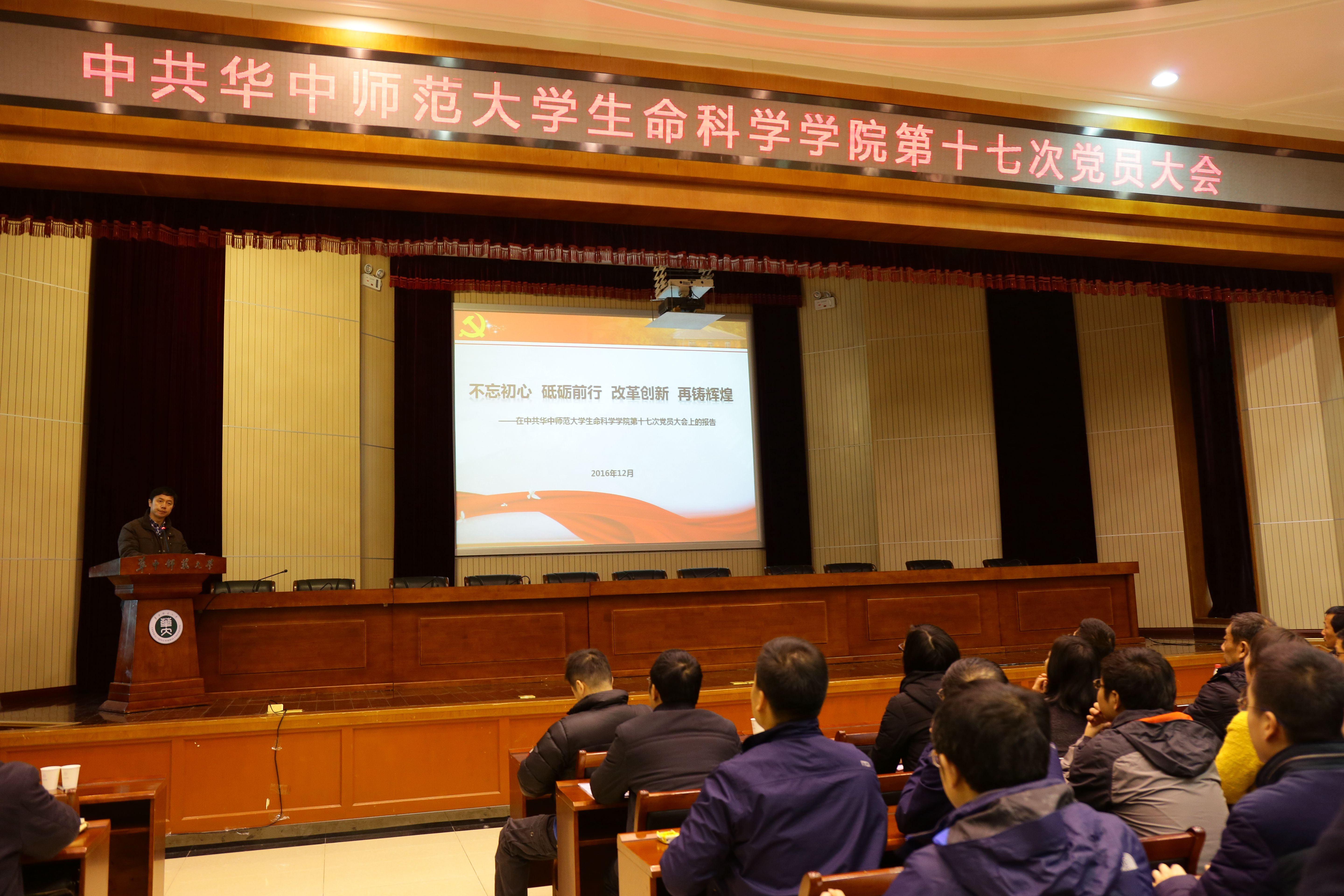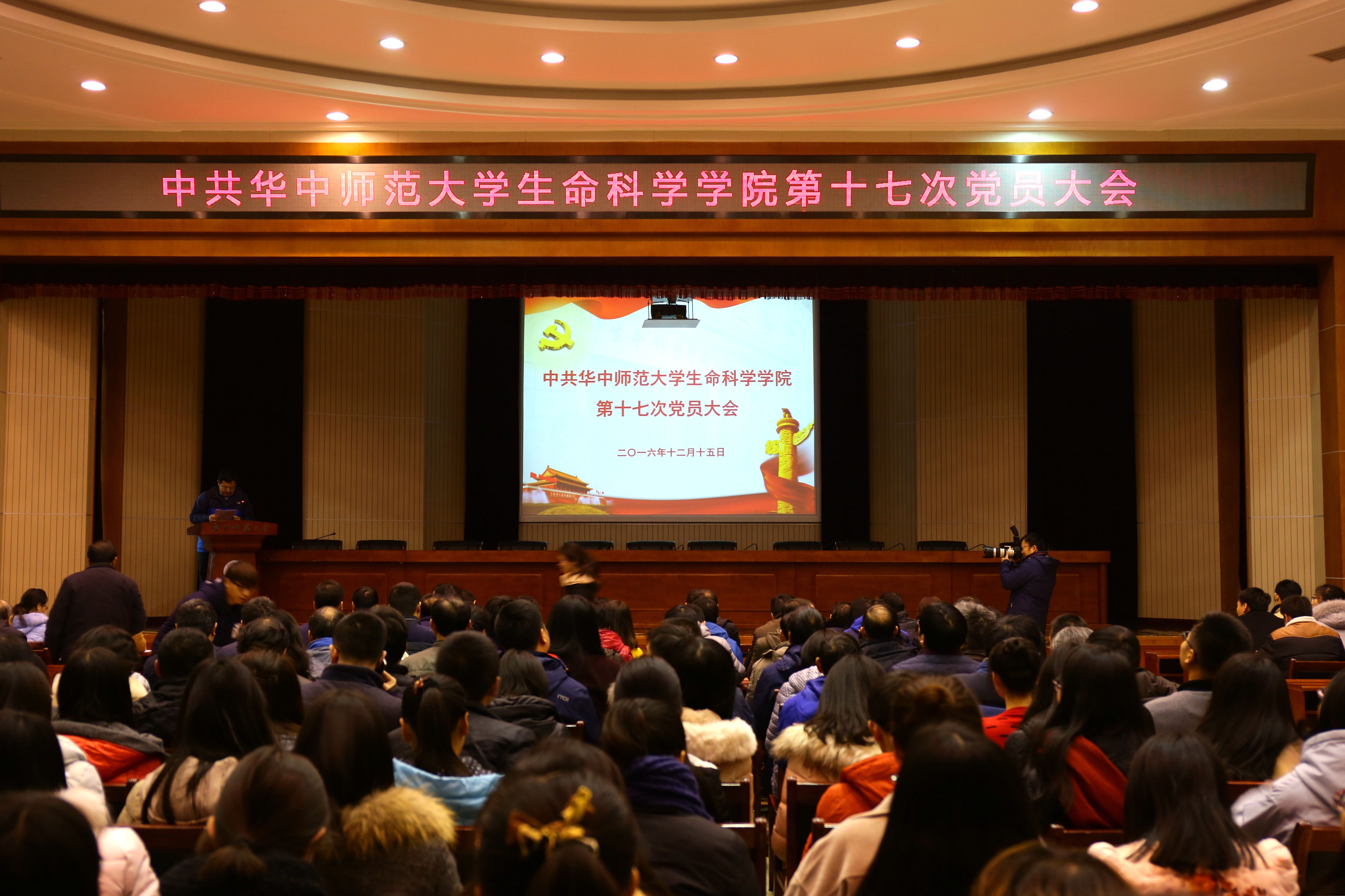 华大生科讯(通讯/朱家华 黄艳青 摄影/周权 康晨 苏恒霞)12月15日,中共华中师范大学生命科学学院第十七次党员大会在科学会堂一楼报告厅隆重召开。会议总结了生科院第十六届党委工作,选举产生了学院第十七届党委委员。学院教工党员、离退休党员及学生中的正式党员参加会议,预备党员列席会议。生科院第十六届党委委员、院长邱保胜同志主持会议。