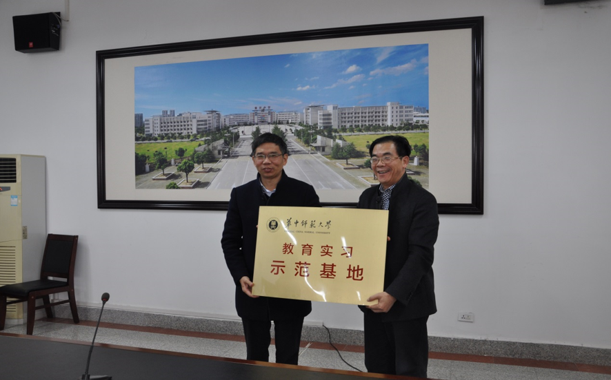 黄冈市教育局副局长王银芬、黄冈中学校长何兰田等;黄石二中校长周阿毛等热情接待了蔡红生副校长一行。9日上午,在黄冈中学的授牌仪式上,何兰田校长介绍了黄冈中学的基本情况和近年的办学目标,并期待与我校进一步开展合作与交流。王银芬副局长表示,黄冈中学和华中师范大学友谊深厚,相互合作与支持,共同促进了黄冈市基础教育的发展。9日下午,在黄石二中的授牌仪式上,周阿毛校长表示学校有责任为华中师范大学的师范生提供教育实习资源,有义务为培养未来教师而努力,并表示为实习生提供“最真诚”的服务和帮助。