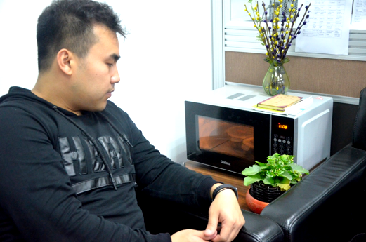 回到办公室已经十一点五十八分,唐老师将带来的盒饭放进微波炉里加热,他坦言这是经常的事。有时候,事情多得连回家吃饭的时间都没有。他笑着说在家也会自己做饭,有空时也会做做家务打扫卫生。