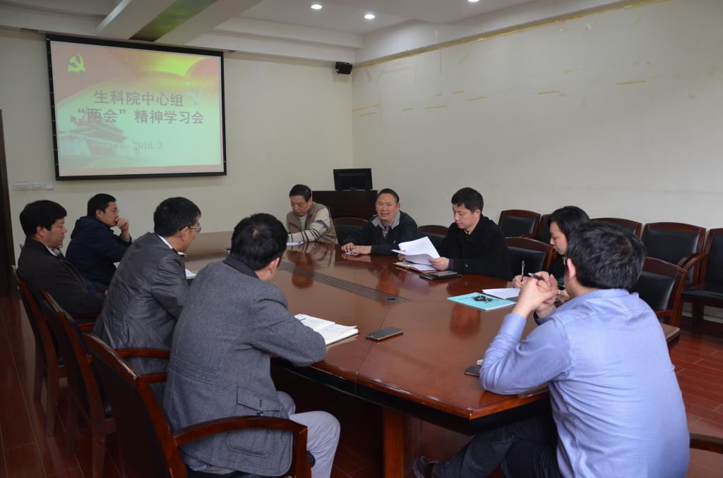 4月1日下午,我院党委中心组在232会议室召开会议,进一步学习领会2016年全国两会精神,并就集中观看的2016年全国两会期间国务院总理李克强答中外记者问的视频片段进行认真研讨,结合自己的工作实际交流学习体会。会议由院党委书记邱玉华主持。