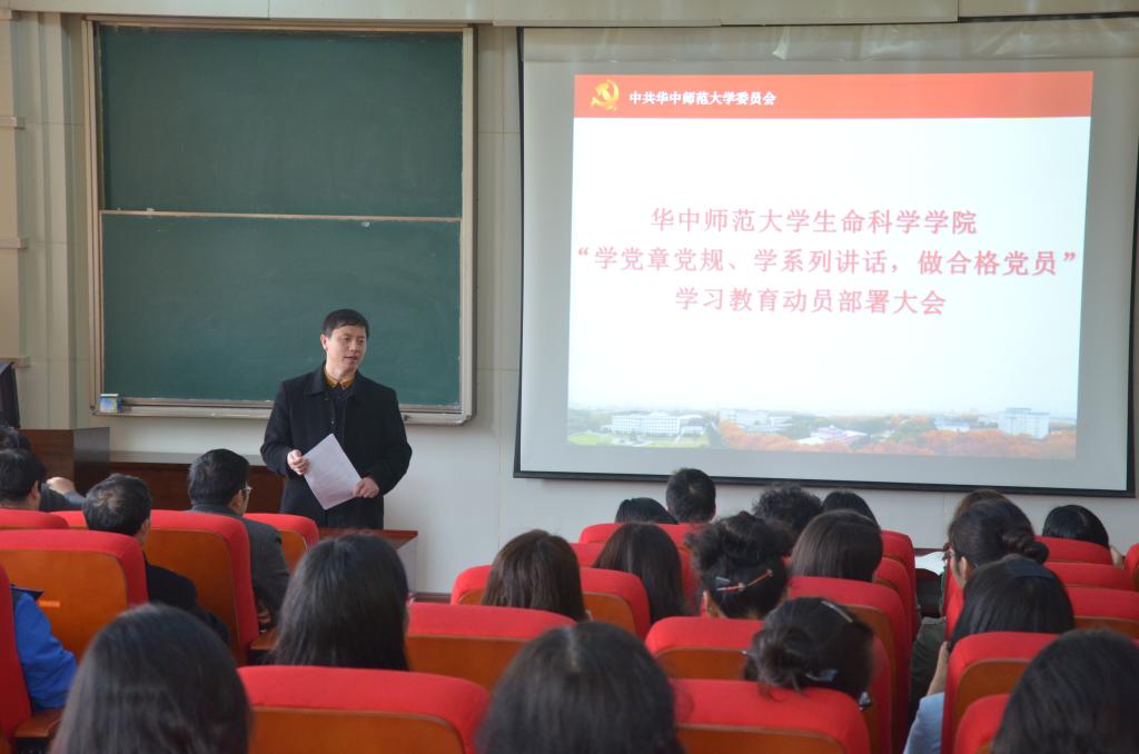 邱玉华对本次教职工大会的议程进行介绍,并强调开展“两学一做”学习教育和抓好全国“两会”精神学习贯彻工作的重大意义,要求全体党员要认真领会“两会”精神,扎实开展“两学一做”学习教育。随后,院党委副书记金新利传达了校党委书记马敏《从严从实开展“两学一做”学习教育深入推进学校高水平大学建设》的讲话精神,从准确把握“两学一做”学习教育的重要意义、找准开展“两学一做”学习教育的有效路径、切实加强“两学一做”学习教育的工作领导三方面对“两学一做”学习教育活动进行解读,他指出深入开展“两学一做”学习教育,是今年学校党的建设工作的龙头任务,也是加强党对高校领导的有力抓手;广大党员要把这次学习教育作为一项政治任务,融入党员教育管理新常态,打造一支具有铁一般信仰、铁一般信念、铁一般纪律、铁一般担当的党员队伍,为学校高水平大学建设奠定坚实的组织基础。