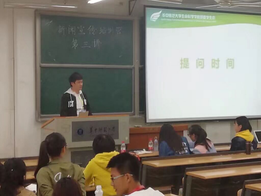 华大生科讯(通讯员 王一丹)11月12日下午,我院新闻宣传培训营第三讲在8216教室顺利举行。此次培训由院团委副书记徐昊主持,院团委学生会新媒体部长徐江和副部长梁文杰主讲。