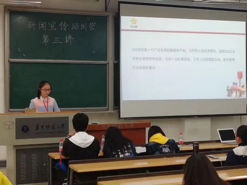 培训伊始,徐江就“新媒体之QQ空间及微博的运营”提出了自己的见解并从栏目、文案、照片这三个方面进行讲解。她提出,新媒体重点在于一个“新”,栏目也可分为固定栏目和临时栏目,不同的栏目类型所立足的重点和格式也会有所不同,不应混为一谈。她强调文案应措辞准确,根据表达的主题灵活选用活泼或严肃的风格,并明确活动的对象、时间和目的;最后,徐江从美观、清晰度、大小、数量等四个方面提出了选用照片的要求。