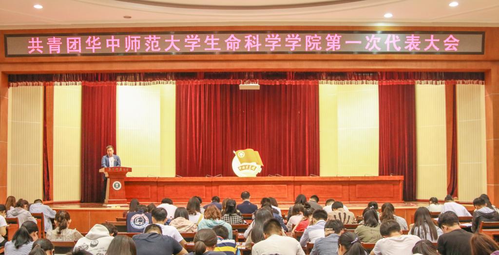 华大生科讯(通讯员 王一丹 檀歆玥)4月22日上午,共青团华中师范大学生命科学学院第一次代表大会在科学会堂一楼报告厅隆重开幕。我院党委书记邱玉华、校团委副书记麻旎、院党委副书记金新利、武汉大学基础医学院团委书记李楠和来自兄弟高校和院系的嘉宾,以及本次团代会代表出席了此次会议。会议由院团委副书记徐昊主持。