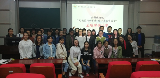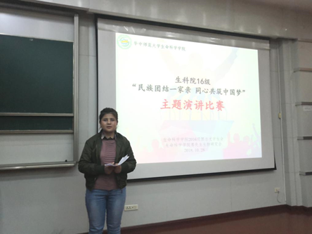 华大生科讯(通讯员 艾静)为深入学习贯彻习近平新时代中国特色社会主义思想和党的十九大精神,加强民族团结工作建设,促进我院少数民族学生成长成才,我院本科生2016级“民族团结一家亲,同心共筑中国梦”主题演讲比赛于10月28日晚在生科院5301成功举办。学工部少数民族专职辅导员美合日姑丽·阿不都外力、我院2016级辅导员余璇出席活动并担任比赛评委。本次比赛由熊广泽同学主持。
