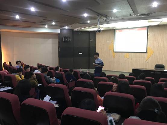 首先,王棣以我院的宣传架构与宣传三大载体引出了宣传工作的理念。随后,王棣老师以新闻的概念引出了新闻的特性、新闻的构成和新闻的要素,并对新闻和宣传的区别做了辨析。接着,王棣讲到校园新闻写作,强调标题要“贴切明了、简练生动”,也强调了导语是一篇文章的精髓的重要性。在校园新闻写作讲解中,王棣讲到会议类、活动类和讲座类三种校园新闻类型,并分别做写作与配图指导。在讲授新闻正文写作时,他指出要注意遵守新闻的客观性,避免加入通讯员的主观感受。他还提到了新闻的倒金字塔结构与校园新闻工作者的业务素质要求。