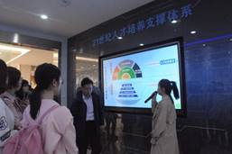 活动最后,崔鸿教授、许桂芬教授、吴红漫等教授一行人来到了我校8513参观智慧教室。崔鸿教授对智慧教室的建成、各项功能等进行了详细介绍,同时对我校云平台的建设及其与智慧教室的结合所带来的优势进行了讲解,并以探究活动课、实验课等为例说明了如何培养学生的科学素养、有效进行教学评价,以促进教师专业发展。