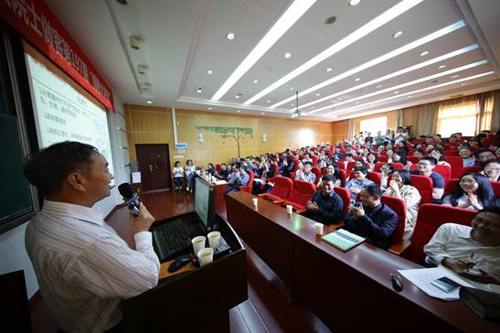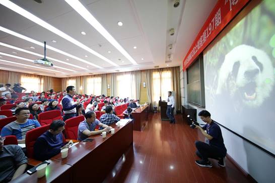 同时,魏院士介绍了调查大熊猫数量的常用方法,如咬节区分法、分子生物学方法等。从大熊猫的代谢速率、繁殖率、遗传多样性等方面进行了简要介绍。魏辅文院士语言轻松幽默,一首《熊猫咪咪》更是赢得了在场师生热烈的掌声。据魏院士介绍,经过各方面努力,大熊猫种群已经从“濒危”到“易危”,我国在濒危动物保护方面为世界树立了一个典范。