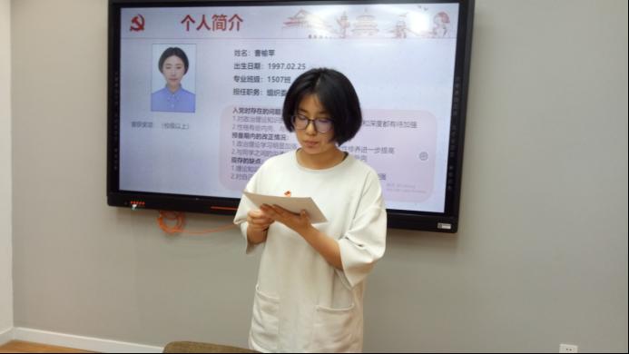 最后,组织委员袁鑫进行总结,她表示党员同志加强学习,共同做好支部工作。此外她还对毕业生组织关系转出、六月份党员发展工作进行了安排,至此本次活动圆满结束。