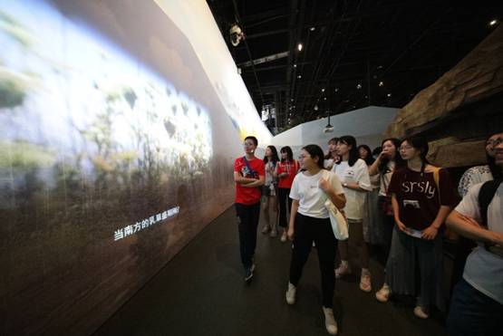 大河生命馆常设展览“大河之旅·生命之歌”,以大河为背景,以生命为主题,以贝林捐赠标本为基础,以长江对话世界大河为布展理念,以世界上最具代表性的大河流域为分区,陈列近3000件古生物、动植物标本,辅以精美壁画AR、VR与全息投影等多种陈展手段,充分展现不同区域下的丰富的自然生态环境和生物多样性、联系性、差异性。从丛林密布的亚马逊流域到充满原始野性之美的尼罗河·马拉河流域,从冰雪覆盖的叶尼塞河流域到奔流不息的黄河流域。大河孕育生命,大河延续生命!场馆中还有许多骨骼标本、化石标本的陈列,充分展现生命进化的魅力。在参观过程中,周权老师向大家分享展出标本的有趣故事,馆内的志愿讲解员生动讲解,大家受益匪浅。