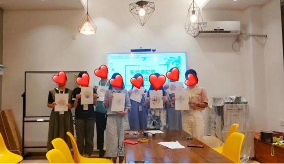 在制作完后,大家轮流分享自己的构图思路,作画时的心理感受,其中有对自己的现状的阐述,也有对美好生活和未来的期待。同学们也发现,当沉浸在自己的世界里,和心中的“曼陀罗”对话时,外界的烦恼和压力随之减小,身心状态更加轻松,能够更有力量地处理当下的烦恼和问题。