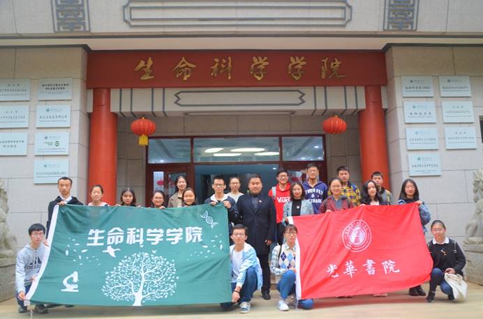 讨论完成后,两院在生科院门口合影留念。最后,我院团学成员邀请光华书院的老师同学们参观了我校创新创业中心。至此,本次交流圆满结束。