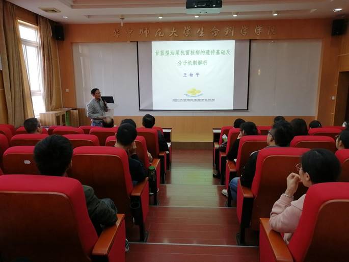 华研生科讯(通讯员 张笑怡)11月15日下午15:30,扬州大学生物科学与技术学院教授,博士生导师,植物学学科、博士点带头人,扬州大学“新世纪人才工程”科技创新团队带头人王幼平教授应邀在5301报告厅作了题为“甘蓝型油菜抗菌核病的遗传基础及分子机制解析”的讲座。任峰教授主持讲座,我院研究生及部分教师参加了学术交流与讨论,学术氛围浓厚。