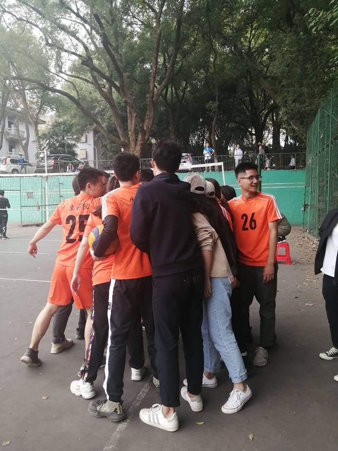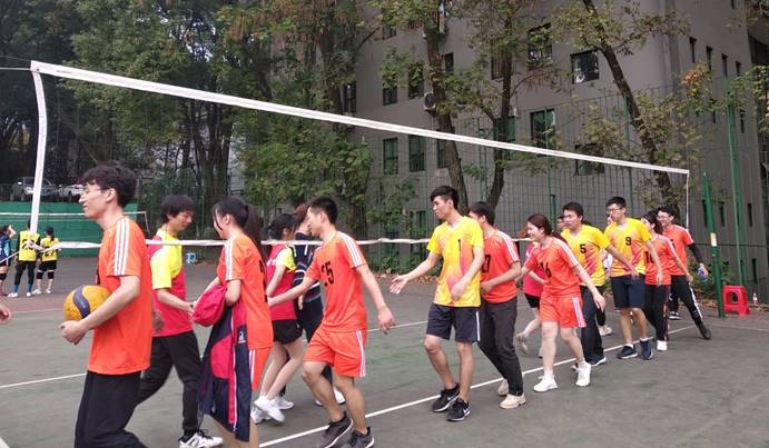 赛后,我院排球队员们友好亲切地与对手握手并相互激励,切身力行友谊第一的原则,双方交流经验,相互学习。颁发奖杯后,我院队员与信管学院的排球队员们合影留念。