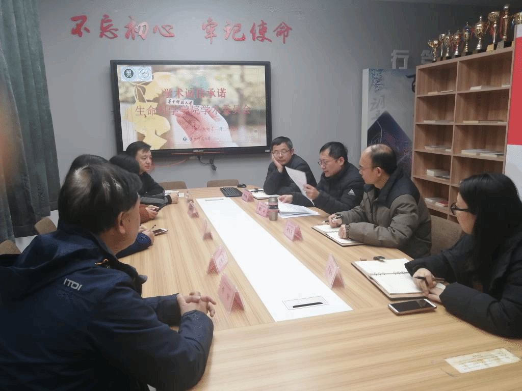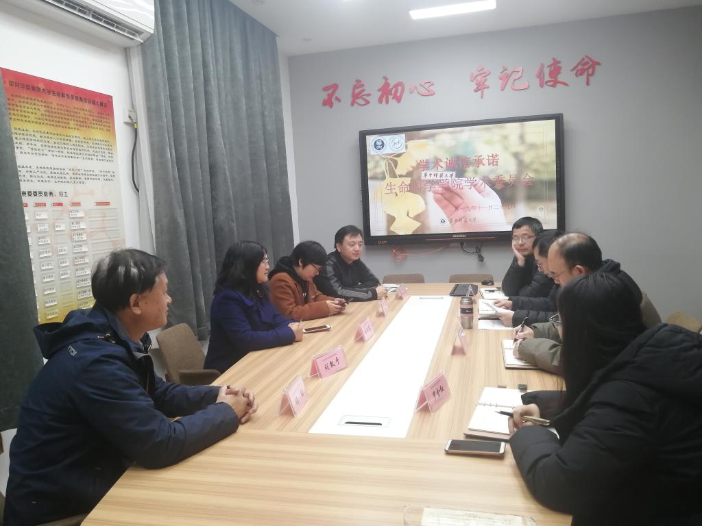 华研生科讯(通讯员 王天梅)科学道德和学术诚信是科技工作者需要严格遵循的操守,也是开展“不忘初心、牢记使命”主题教育之科学道德与学风建设的重要内容之一。为了避免学术不端问题在我院滋生,加强学院学术规范与学术道德建设,远离学术红线,筑牢道德底线,守好学术诚信,我院学术委员会于2019年11月29日召开学术诚信承诺主题会议,并签署了学术诚信协议书。生命科学学院院长邱保胜、党委副书记刘阳、科研副院长谢波、学院学术委员会委员及科研秘书杨娇艳等老师参加了会议。