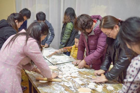华大生科讯(通讯员 王棣 施羽)2020年1月1日元旦节中午,院工会组织我院全体教职工在桂苑多功能厅欢聚一堂,开展2020年教职工包饺子新年联欢会。我院全体教师、教师家属及部分学生参加。