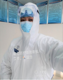 叫表哥有些生疏了,平时我就直接喊他哥,因为他就跟我的亲哥哥一样,从小与我一起长大。他是河南省商丘市第四人民医院神经外科的副主任医师,预备党员。商丘市第四人民医院是商丘市防治新型冠状病毒的定点医院,虽然他所在的神经外科并不属于治疗新型肺炎的科室,但眼见商丘市确诊和疑似病例的数量不断增加,前线医护人员严重不足,他毫不犹疑地于2020年1月30日向院党委、外科党支部递交了请战书,申请加入抗击新冠肺炎的最前线,无论生死,不计报酬,随时待命!一开始,他怕家里人担心,一直没有告诉我们,直到2月5日接到任务之后才跟我们说。后来,他告诉我:医者仁心,我不愿看到患者由于得不到及时的救治而使病情恶化。哥哥是个不善言辞的人,我知道在他简单的话语里饱含了他深深的爱国情怀。我记得他以前跟我说,他很喜欢路遥先生的《平凡的世界》,他敬佩孙少安处理那一摊糟心事时的态度,只要肯拼搏,日子总不会一直是苦的。我想这次他申请去前线,也是想让自己过得平凡而不平庸吧!目前,医院把他派到了收治疑似病人的发热门诊,也许在我写这篇文章时,他正在包裹在密不透气的防护服里紧锣密鼓地对病人进行诊断和治疗。