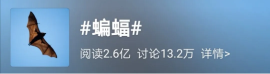 12月底、1月初网络上开始流传“武汉出现不明肺炎”的消息,也有人说不明肺炎其实就是SARS回来了,自然隐藏在人们内心多年的恐惧也就被唤醒了。由于蝙蝠和SARS间有关联,出于对SARS的恐惧,人们开始恐惧蝙蝠。介绍蝙蝠与病毒关系的博文也-下子冒了出来。