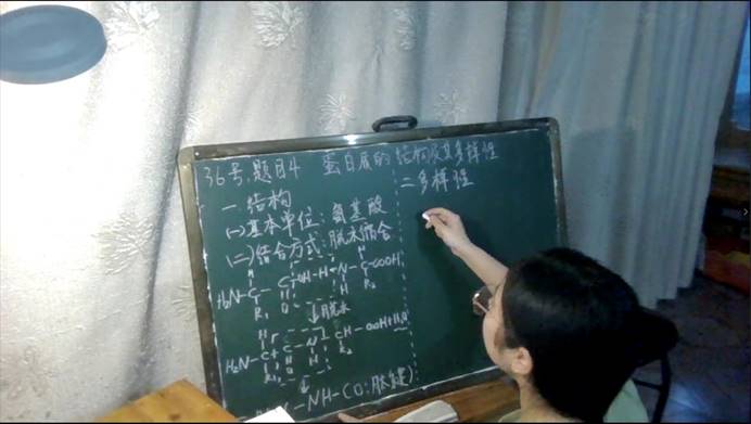 本次比赛共设4道题,内容为常见的生物知识,包含流动镶嵌模型的基本内容、细胞核的结构、细胞的全能性、蛋白质的结构及其多样性四个知识点。参赛选手是来自17、18、19三个年级各专业的学子,比赛中选手们根据随机抽取的题目进行精心的板书设计,要求“内容完整、书写美观、结构清晰、逻辑性强、重点突出、设计有特色”,选手须在25分钟内在黑板上完成作品。在比赛过程中,选手们开启视频将自己的书写过程展现给评委、嘉宾和观众,一笔一划尽显书写功力。在计时结束后,每位选手将自己的作品拍照或者扫描上传到指定的群相册,以便评委老师查看。经过评委的两轮打分,共有16位选手获奖,其中一等奖3名,二等奖5名,三等奖8名。