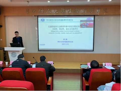 华大生科讯(通讯员 邓淑文、李林芳)12月30日上午,2020年华中师范大学国际青年学者论坛生命科学学院分论坛在我院5301报告厅举行,出席本次论坛的有副校长李鸿飞、院党委书记邱玉华、院长邱保胜及学院学术委员会成员、学院师生和参加论坛的青年学者。24位海内外优秀人才向学院师生进行了精彩的学术报告,通过线上线下相结合的方式共赴学术盛会。