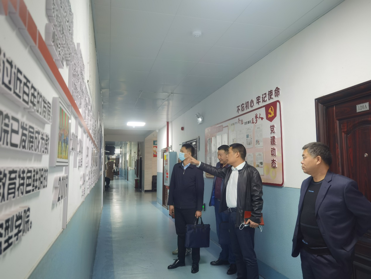 姚院长一行人在实验中心主任李兵、院办主任邓梅峰的陪同下,参观了我院的实验平台、学院成果展示文化长廊。