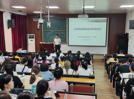 9月27日,实验教学中心主任李兵做了题为“生物实验室安全与环保培训”的实验室安全知识讲座,他首先带领同学们一同回顾了生科院实验中心的发展历程,紧接着围绕生物学实验室安全概述、国内外实验室安全现状、我院实验室安全管理措施这三个方面向同学们做了详细的讲解与分析。报告选取学院实验室安全真实案例,内容针对性和实用性强,与会人员深受教育和启发。报告会上气氛热烈,参会学生就如何安全规范地开展实验研究与李兵进行了广泛深入的交流和讨论。随后实验中心胡原、秦丽玮、万建三位老师分别介绍了仪器共享平台、平台管理制度与注意事项、实验室废弃物处理。现场气氛活跃,互动频繁。