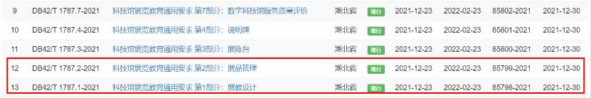 2021年12月23日,湖北省省市场监管局发布2021年第12号公告,由我院崔鸿教授带领的科学教育研究组参与制定的“科技馆展览教育通用要求”系列地方标准正式发布,并将于2022年2月23日正式实施,这是湖北省首批发布的科技馆地方标准。其中崔鸿教授团队主要负责《科技馆展览教育通用要求 第1部分:展教设计》、《科技馆展览教育通用要求 第2部分:展品管理》的制定。
