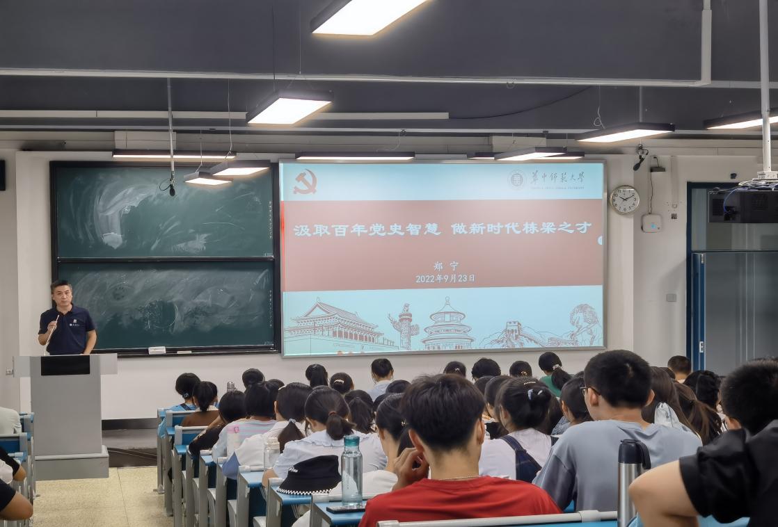 华大生科讯(通讯员 谌思 王雅婷)学百年党史,育时代新人。9月23日及9月27日,华中师范大学生命科学学院党委书记郑宁以“ 汲取百年党史智慧,做新时代栋梁之才”为主题,在八号教学楼为我院2022级全体新生上了第一堂新生研讨课,指导新生从百年党史中汲取智慧,抓紧大学生涯,做紧跟时代、不负时代的青年一代。