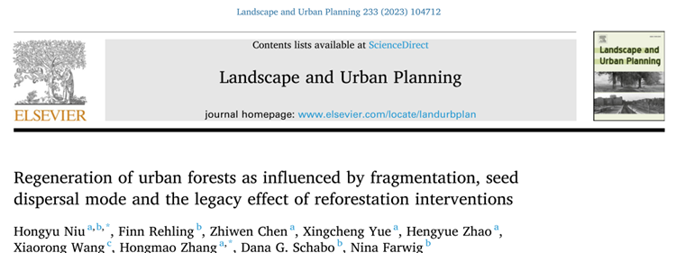 华大生科讯(通讯员 张洪茂 牛红玉)日前,城市研究领域TOP期刊 Landscape and Urban Planning发表了我校生命科学学院张洪茂教授、牛红玉副教授团队关于城市森林群落木本植物多样性维持机制的研究成果(Regeneration of urban forests as influenced by fragmentation, seed dispersal mode and the legacy effect of reforestation interventions, https://doi.org/10.1016/j.landurbplan.2023.104712)。生命科学学院牛红玉副教授为论文的第一和并列通讯作者,张洪茂教授为通讯作者,硕士研究生陈治文、岳星程、赵恒月,湖北省林业科学研究院王晓荣博士,德国马尔堡大学Finn Rehling博士、 Dana G. Schabo博士、 Nina Farwig教授为共同作者。