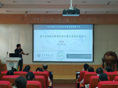 在学术讲座中,闵金荣教授为营员们带来学术讲座——《基于结构的表观遗传相关蛋白质拮抗剂设计》,戴雄风教授为营员们作题为《细菌生长调控的权衡规则》的学术报告,罗金红教授作题为《蝙蝠回声定位研究:机遇和挑战》的学术报告,邱保胜教授作了《蓝藻光合作用研究》的学术报告。营员们积极参加了交流讨论,展现了极大的学术兴趣和热情。最后,谢波副院长进行了生科院研究生招生政策介绍,希望更多的优秀学子们加入到华师生科院的大家庭,在学术道路上继续钻研,在生科院平台上实现自己的理想。