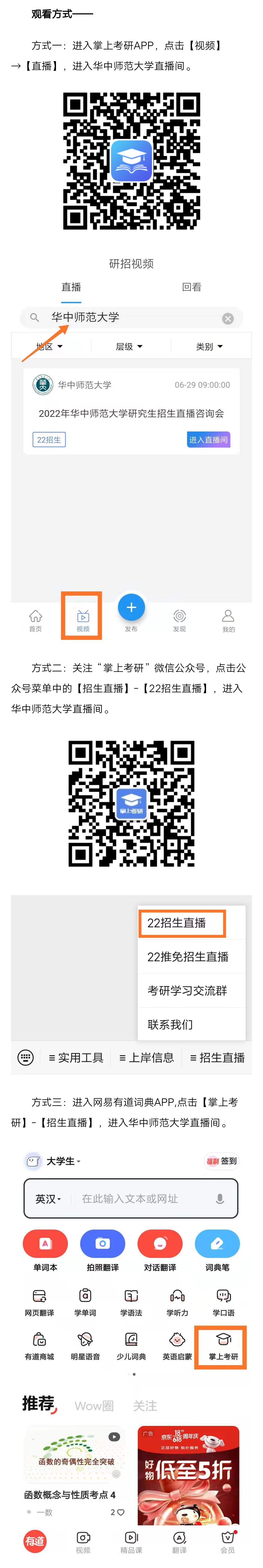 温馨提示:全国各大院校2022研究生招生直播宣讲会火热进行中,关注“掌上考研”微信公众号,下载掌上考研APP,可以第一时间获取最新直播通知哦~