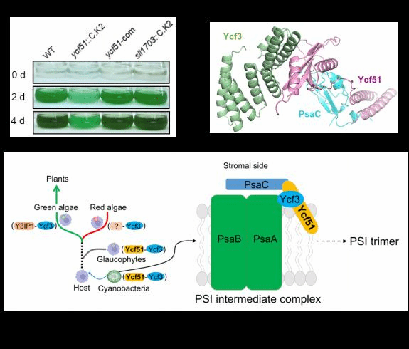 图1. Ycf51参与蓝藻PSI组装的作用机制