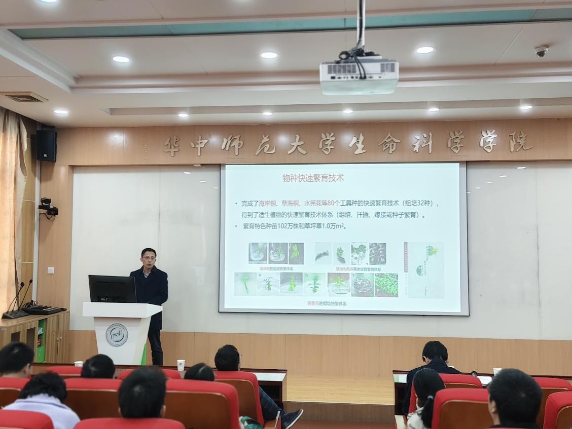 2025年2月18日,中国科学院华南植物园简曙光研究员(二级研究员、博士生导师、中国科学院特聘研究员)受邀在5301会议室作题为“中国热带珊瑚岛植被及其保护与恢复”的专题学术报告。会上,主讲人系统阐释了热带珊瑚岛植被生态特征,重点分享了热带珊瑚岛植被修复关键技术及生物多样性保护策略。与会师生全程专注聆听,并就生态修复技术与专家展开深入交流,现场学术氛围浓厚。